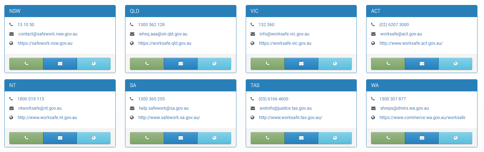 BELOW IS ALL STATES RELEVANT SAFE WORK OFFICE'S CONTACT DETAILS WHICH YOU CAN FIND IT IN MyServo PLATFORM.