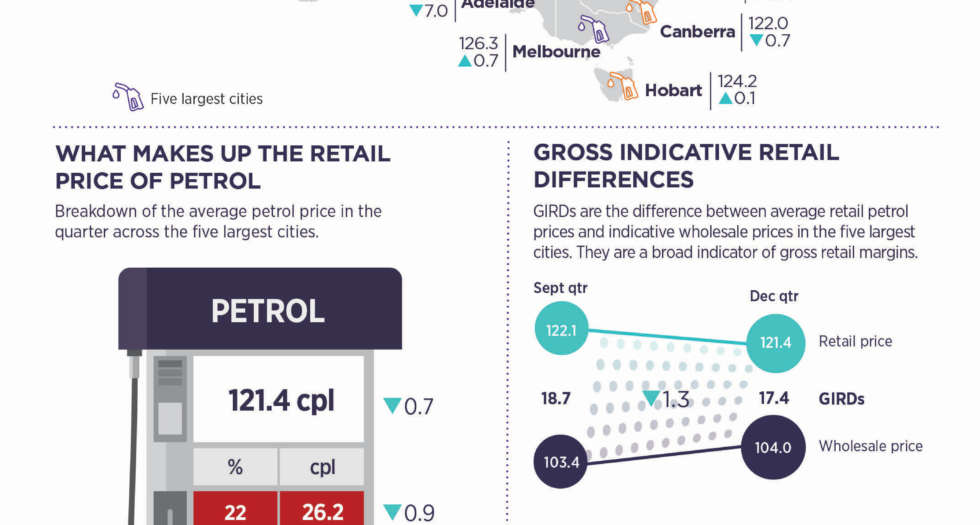 Petrol prices in Australia’s five largest cities stabilised at the end of 2020 after an unpredictable year and petrol sales volumes continued to recover from their earlier pandemic-driven slump. That’s according to the ACCC’s latest petrol monitoring report which shows the average retail price for petrol in the December quarter 2020 across Sydney, Melbourne, Brisbane, Adelaide and Perth was 121.4 cents per litre (cpl), a decrease of only 0.7 cpl from the previous quarter. Of the five […]